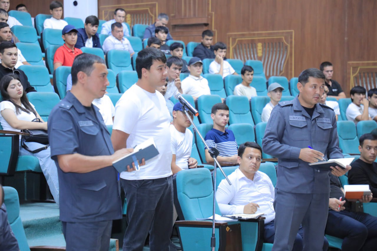 Andijon viloyati IIB boshlig‘i otaliqqa olingan yoshlar bilan uchrashuv-muloqot o‘tkazdi